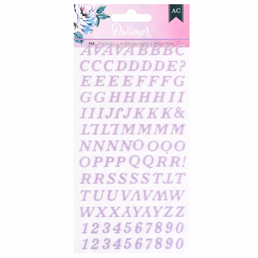 Ge dina pysselprojekt en fin touch med dessa lila bokstäver från American Crafts serie Dreamer.