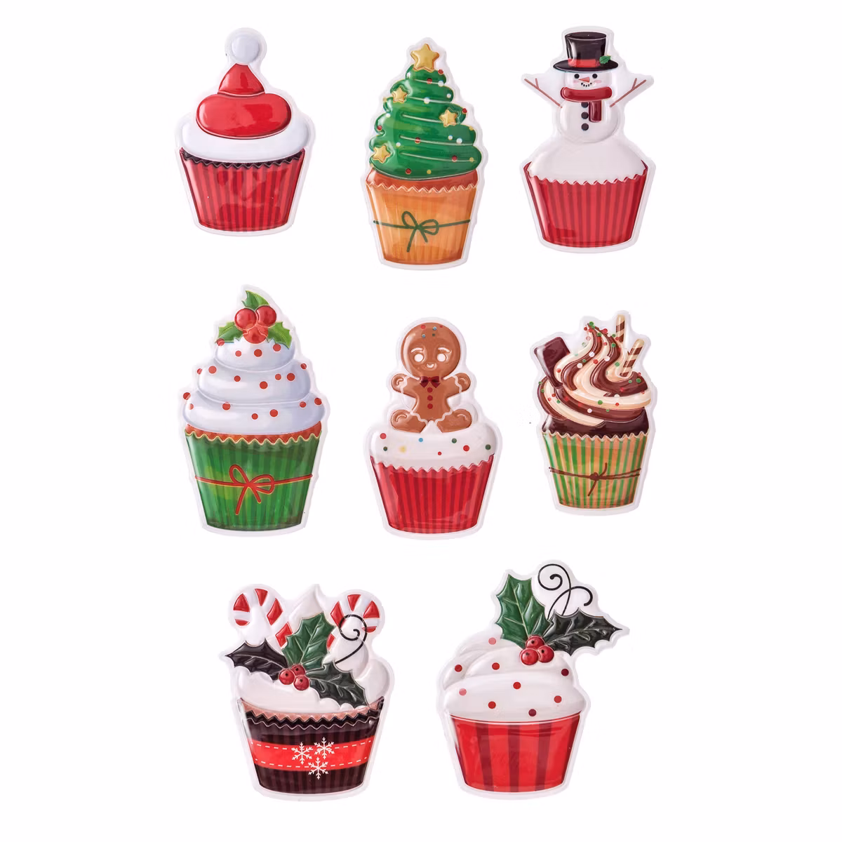 Ge dina julprojekt en charmig touch med 3D-klistermärken i form av julmuffins. Perfekta för kort, presentförpackningar och scrapbooking.