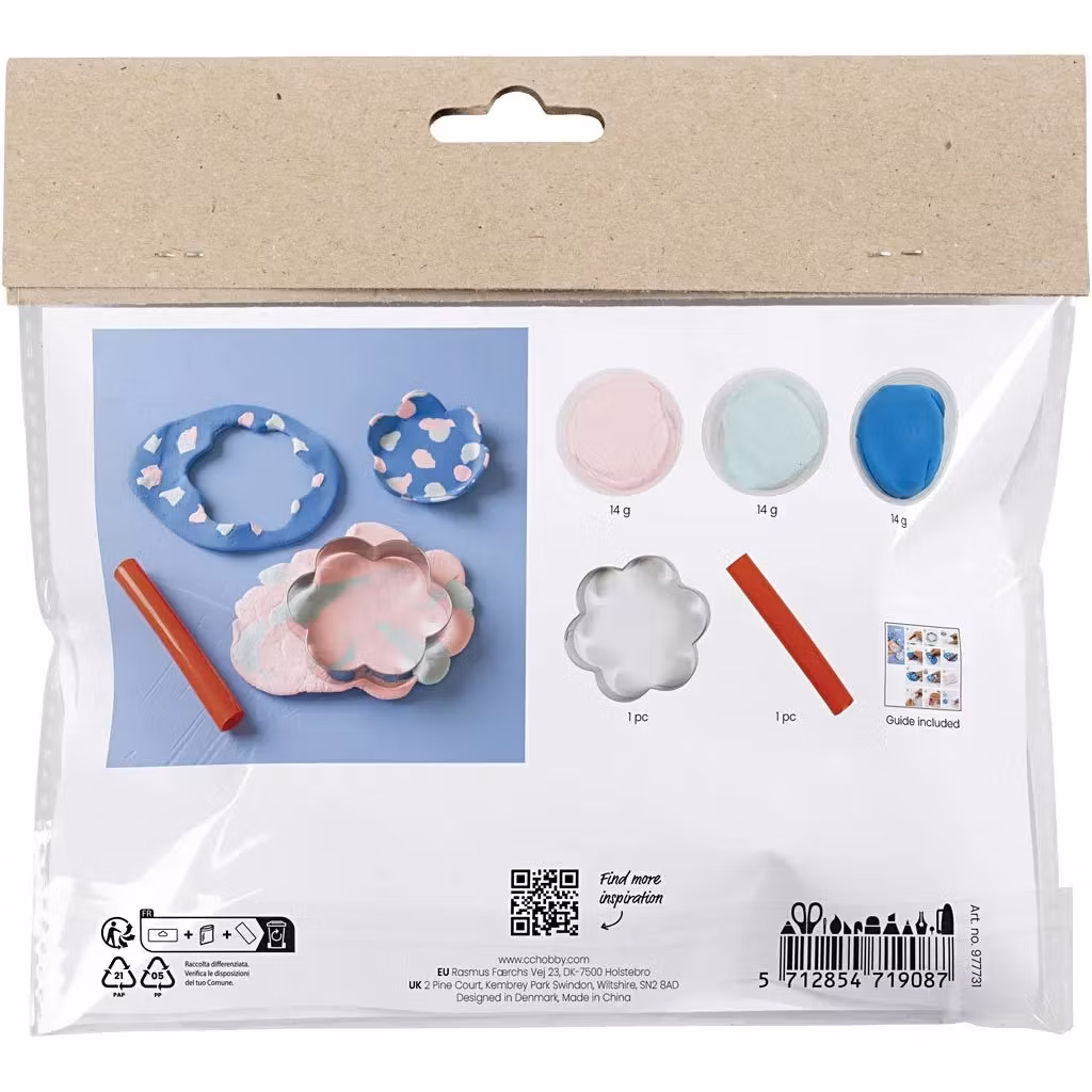 Skapa färgglada och personliga skålar med Mini DIY kit – Fat! Detta pysselset innehåller Silk Clay® och material för att forma fyra skålar, samt alla verktyg och instruktioner som behövs.