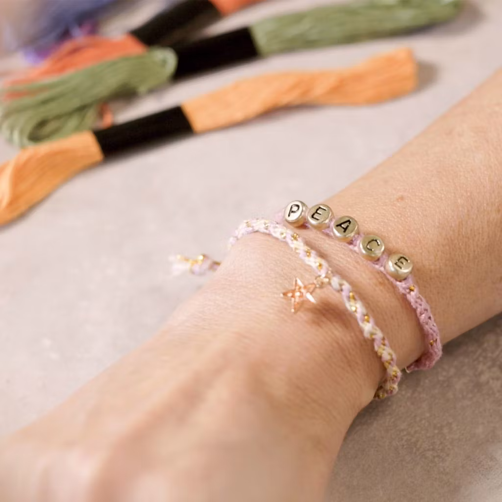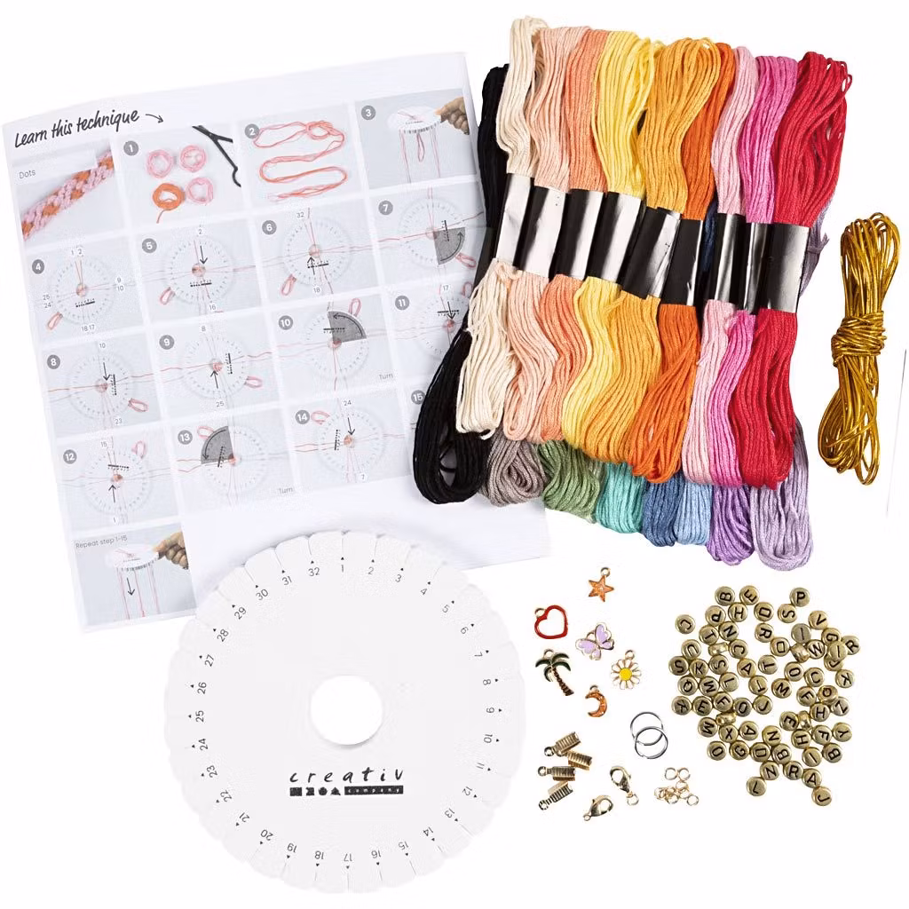 När du har lärt dig flättekniken kan du börja skapa dina egna unika accessoarer. Du kan mixa och matcha olika snören för att göra snygga nyckelringar till din väska – eller så kan du göra gulliga vänskapsarmband med guldpläterade lås, små berlocker och guldtråd. Oavsett vad du väljer att göra är vårt kit perfekt för dig som vill lära dig den japanska flättekniken Kumihimo.