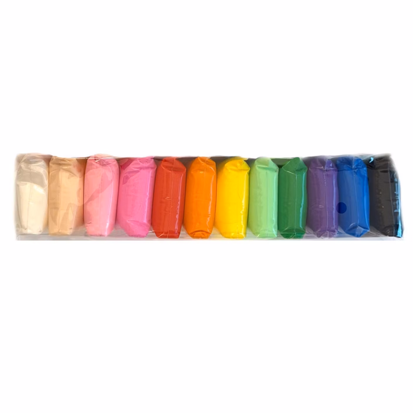 Set med 12 burkar superlätt lufttorkande lera i 12 färger samt 3 verktyg. Kladdfri, mjuk och formbar lera som utvecklar barns kreativitet och finmotorik.