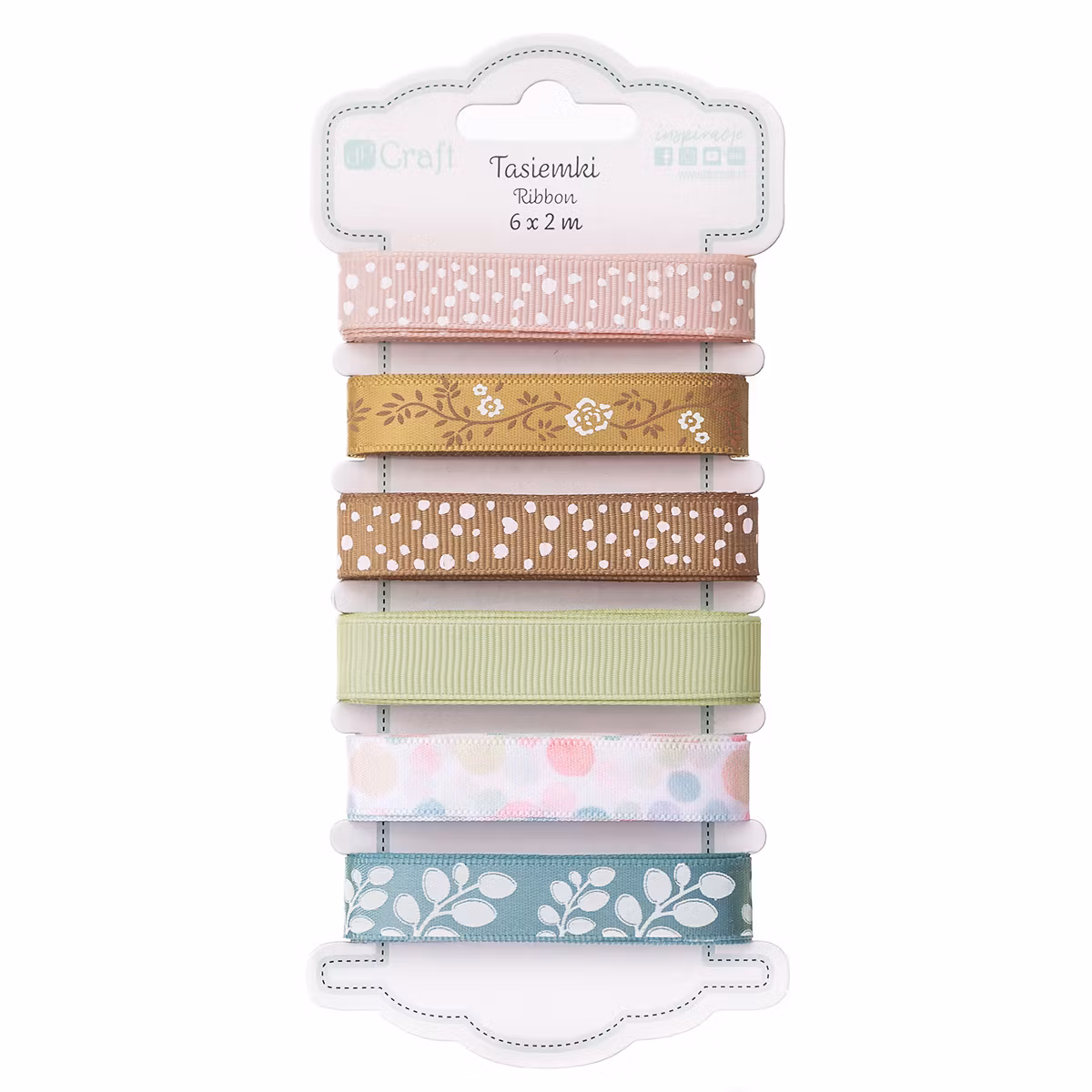 Set med 6 dekorband i rips och satin, 2 meter vardera. Ljuvliga nyanser och skogs-/bohotema, perfekt för scrapbooking, kort, album och pyssel.