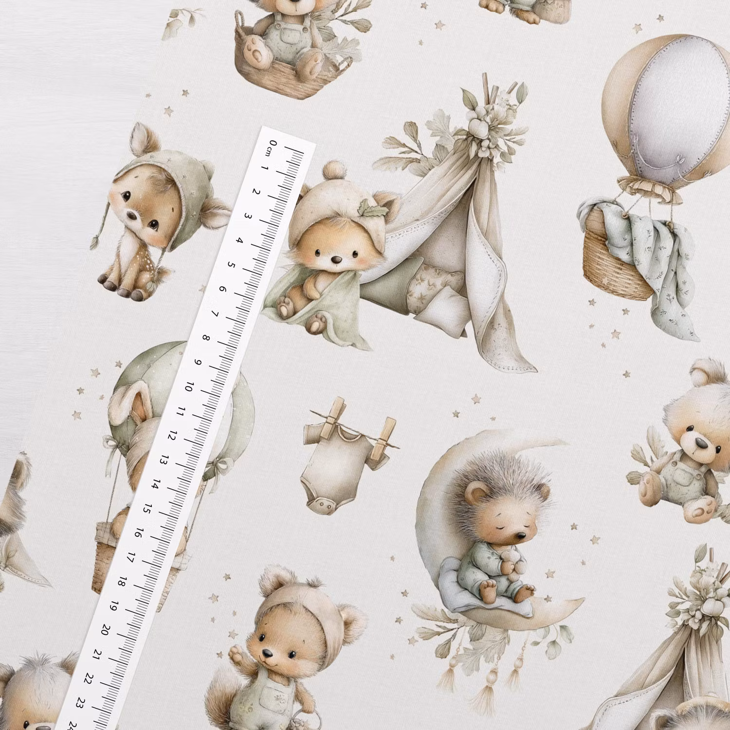Upptäck vårt mjuka och stretchiga jerseytyg med tryck av söta björnar, rävar, rådjur och igelkottar - perfekt för bekväma klänningar, leggings, toppar, tunikor och pyjamasar.