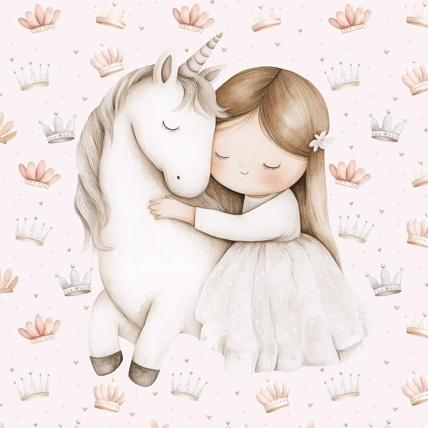 Joggingtyg – Enhörningsvän (40 x 50 cm) är en joggingtygspanel med ett charmigt motiv av enhörningsvänner på mönstrad bakgrund. Panelen är tillverkad i mjukt och följsamt joggingtyg med lätt stretch och öglad insida, vilket ger en behaglig känsla mot huden och gör den enkel och rolig att arbeta med vid sömnad.