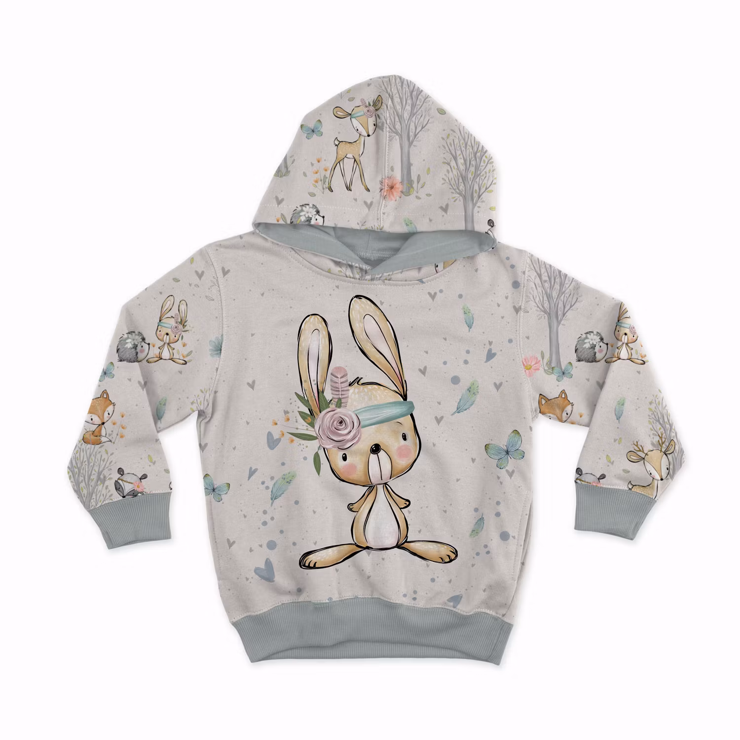 Joggingtyg – Kanin beige (40 x 50 cm) är ett mjukt, stretchigt tyg med tryck av en söt kanin på ljusbeige bakgrund. Tyget har en öglad insida som gör det extra mjukt och skönt mot huden – perfekt för barnplagg och kreativa syprojekt.