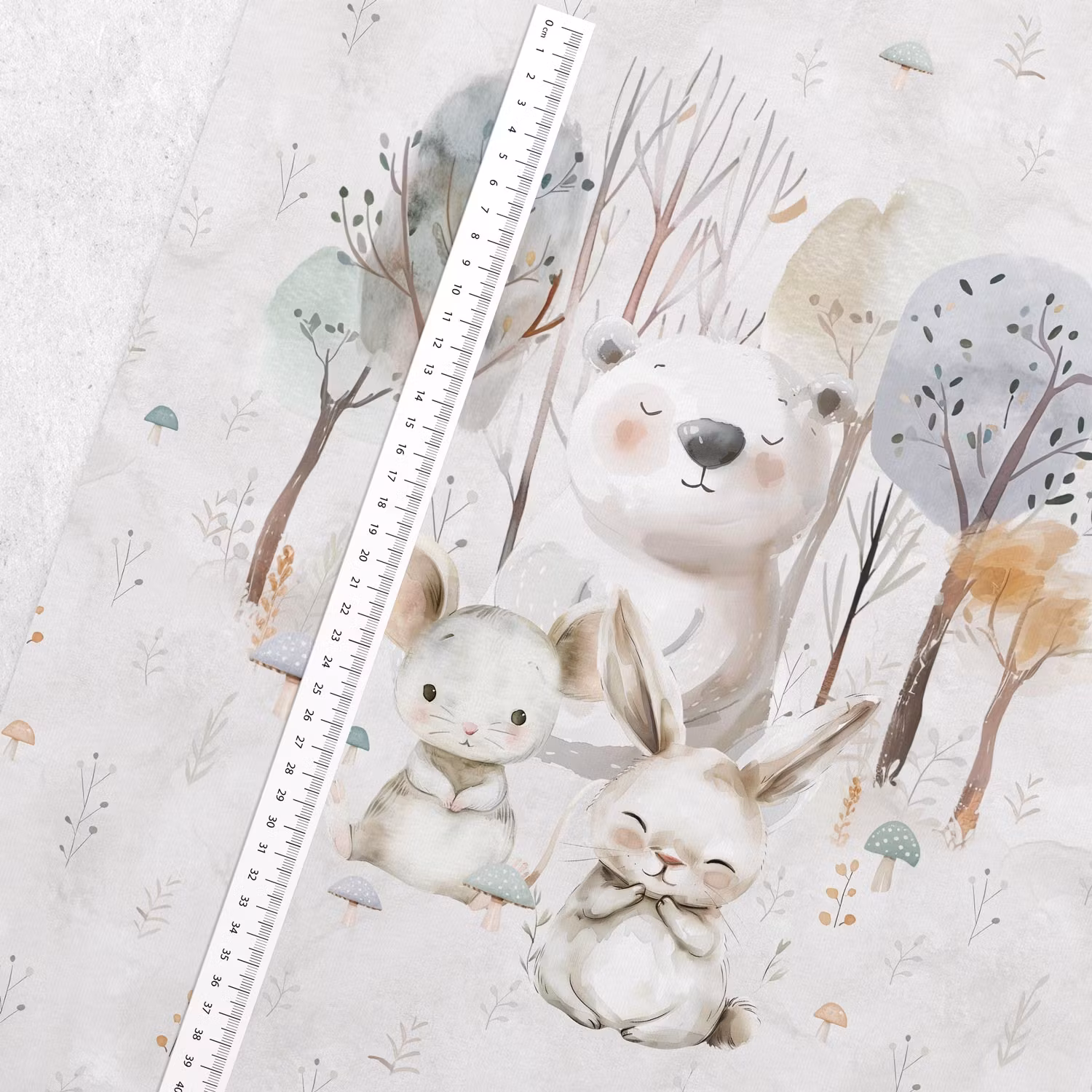 Joggingtyg – Lugna skogen (40 x 50 cm) är ett mjukt och stretchigt tyg med ett charmigt tryck av söta djur i ljusa, harmoniska nyanser. Den öglade insidan gör tyget extra skönt mot huden och perfekt för barnkläder och små kreativa syprojekt.