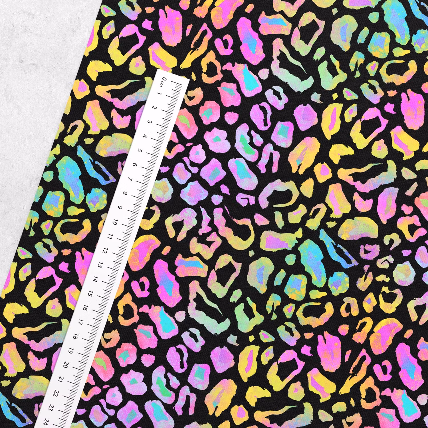 Ett mjukt, stretchigt joggingtyg med färgglatt djurmönster.