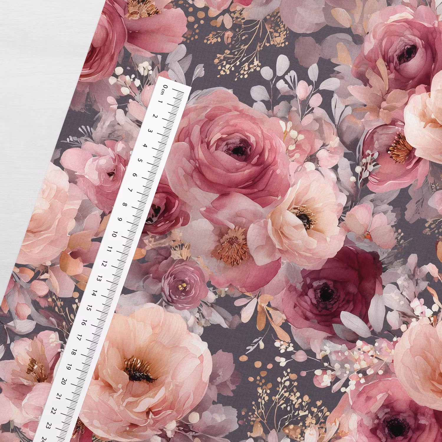 Upptäck vårt mjuka och stretchiga joggingtyg med tryck av vackra rosor med grå bakgrund. Tyget har en öglad insida som ger extra mjukhet och komfort, vilket gör det perfekt för både vardagskläder och mysiga hemmakläder.