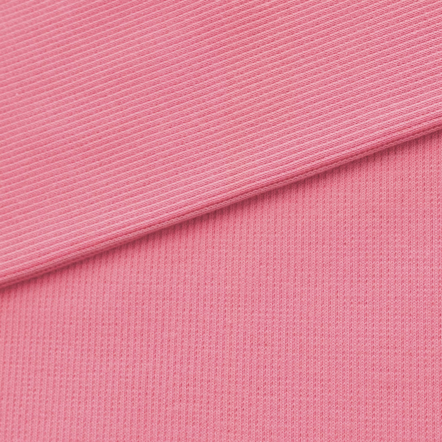 Denna ribbade, rundstickade mudd i mellanrosa är både mjuk och stretchig.