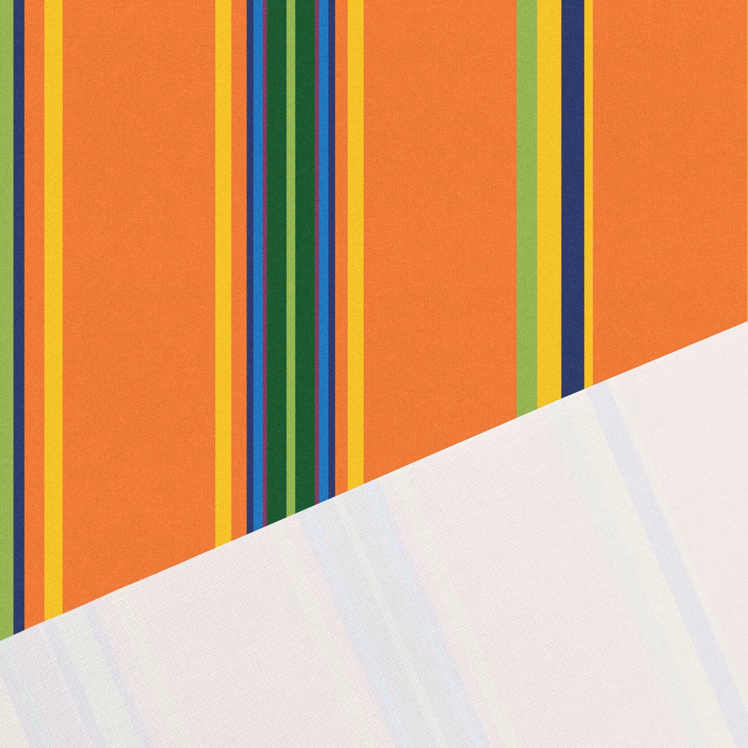 Ett mjukt, vävt bomullstyg med tryck av ränder i orange, grönt, rött, gult och blått.