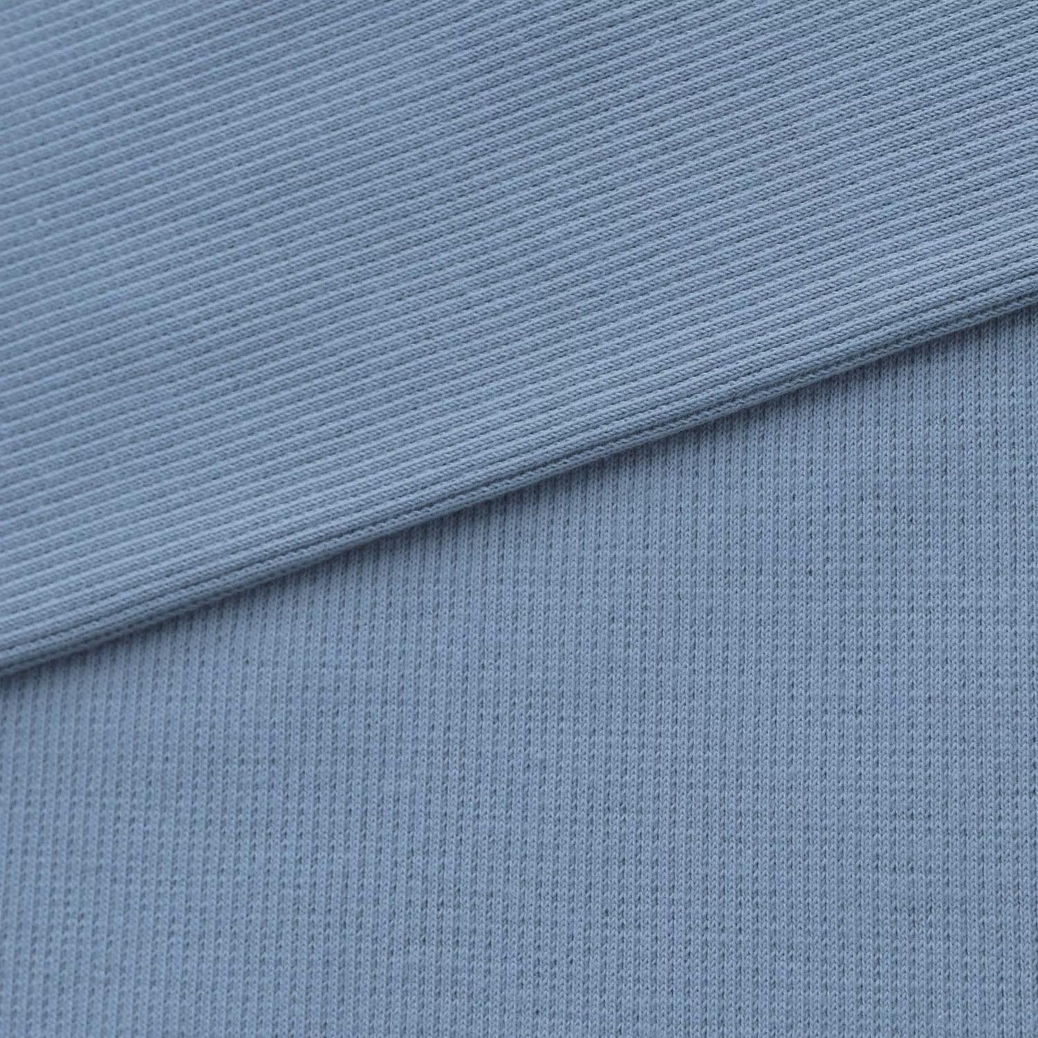 STUV 15 cm - En ribbad, rundstickad mudd i blått som är både mjuk och stretchig. Passar bra för sömnad av ärmslut, halsringningar och linningar.
