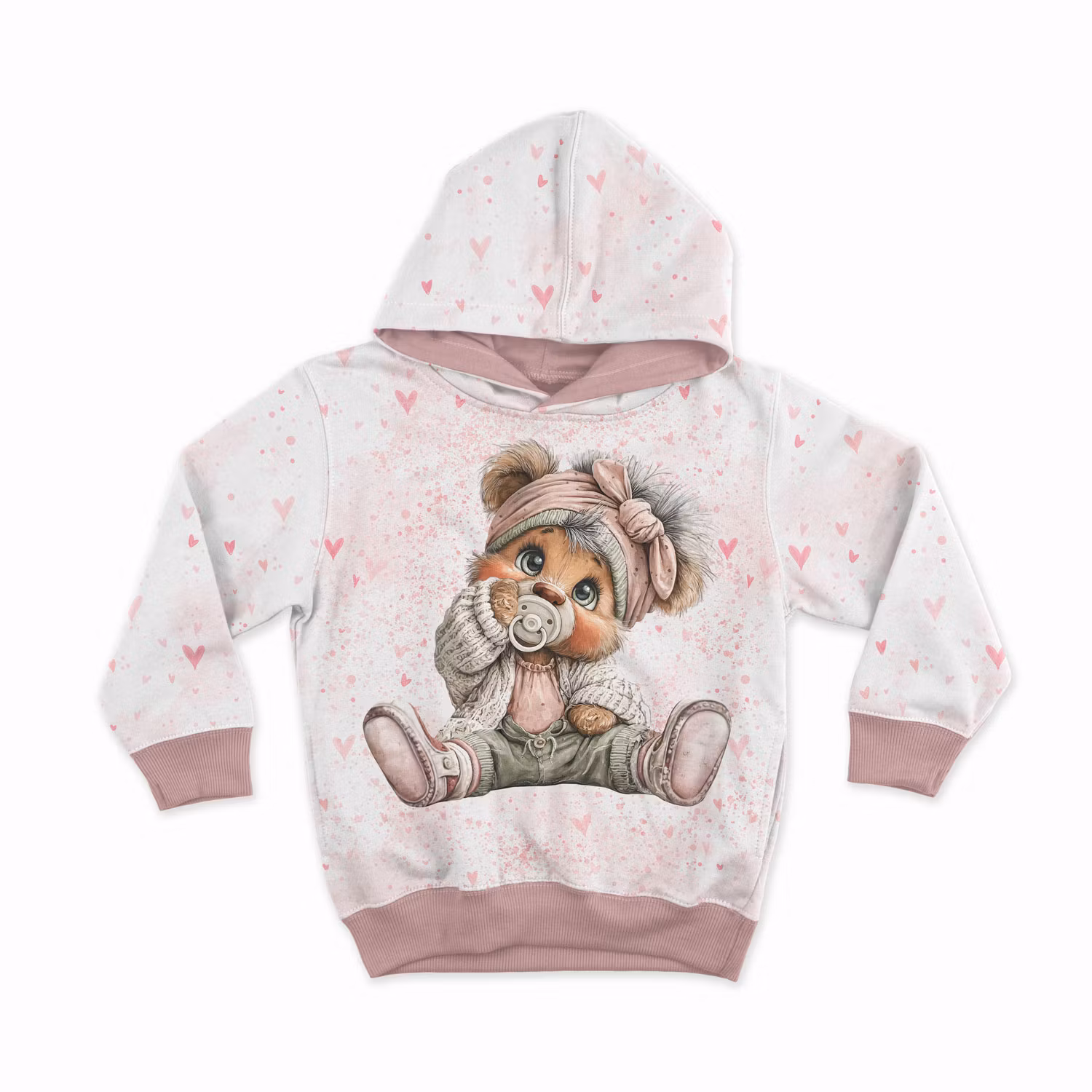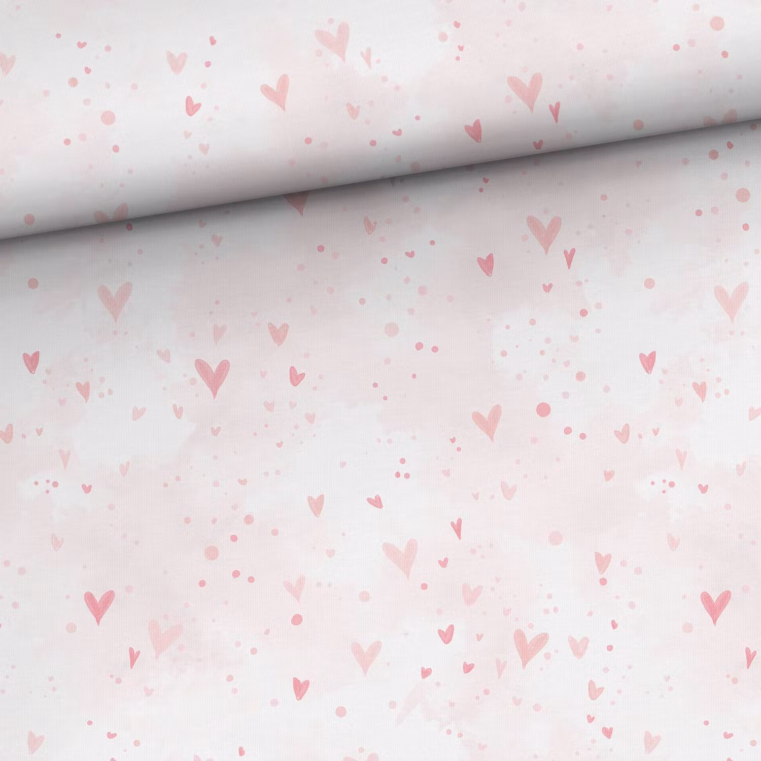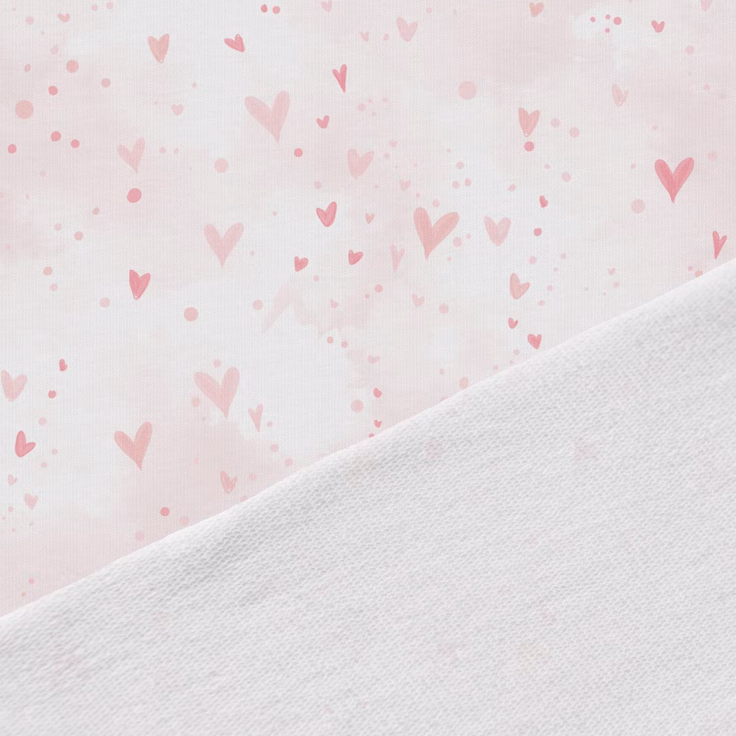 STUV 32 cm - Mjukt, stretchigt joggingtyg med små hjärtan i ljusrosa. Perfekt för tröjor, tunikor, joggingbyxor, leggings och mössor.