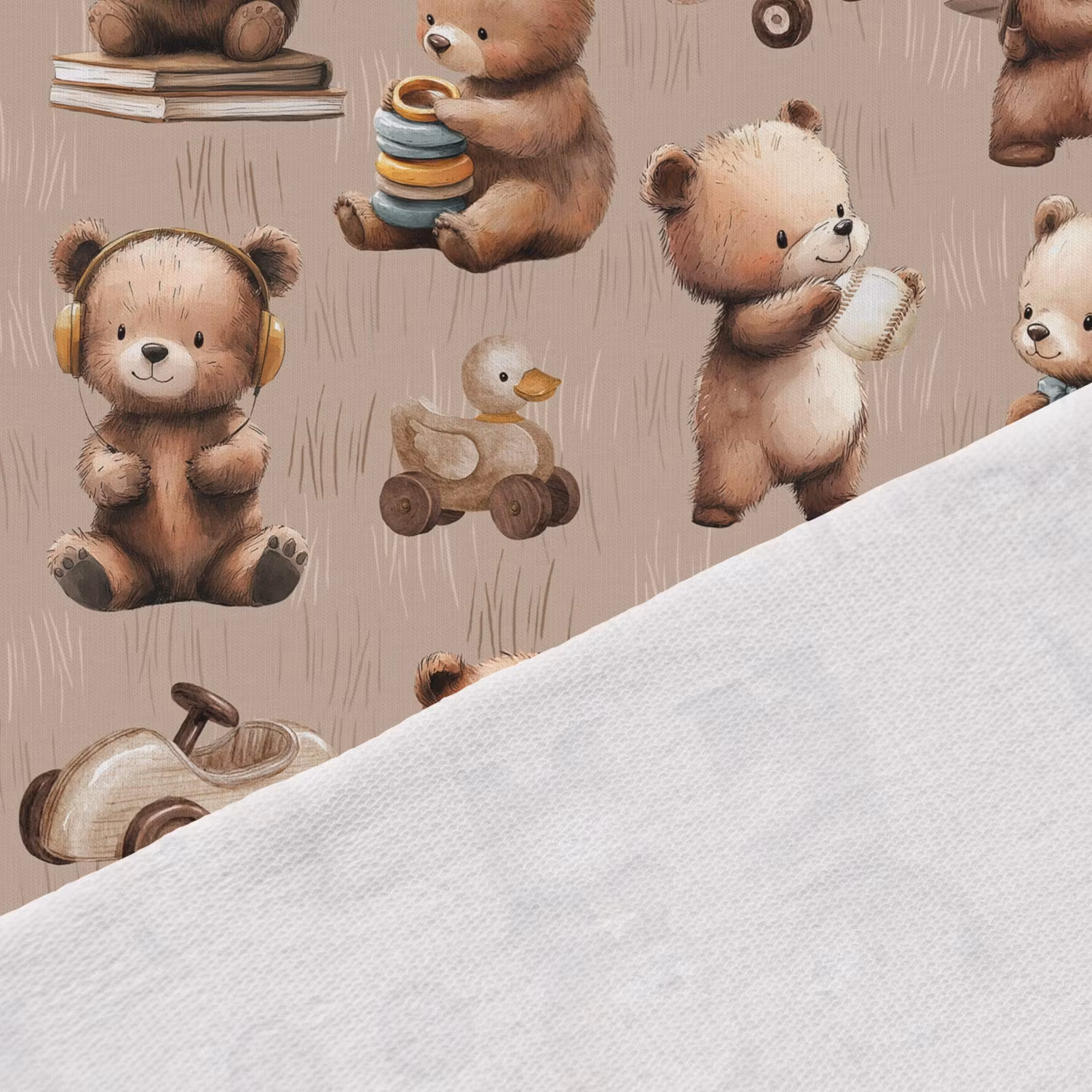 Upptäck vårt mjuka och stretchiga joggingtyg med tryck av söta björnar på brun bakgrund. Tyget har en öglad insida som ger extra mjukhet och komfort, vilket gör det perfekt för både vardagskläder och mysiga hemmakläder.