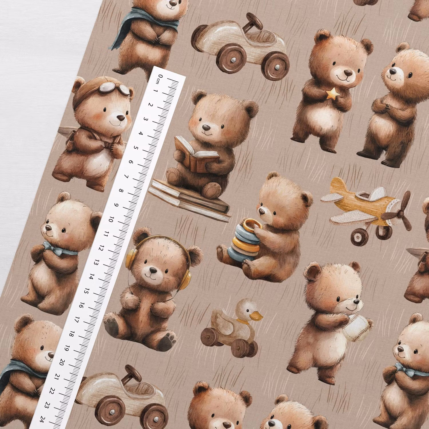 STUV 38 cm - Mjukt, stretchigt joggingtyg med söta björnar i brunt. Perfekt för tröjor, tunikor, joggingbyxor, leggings och mössor.