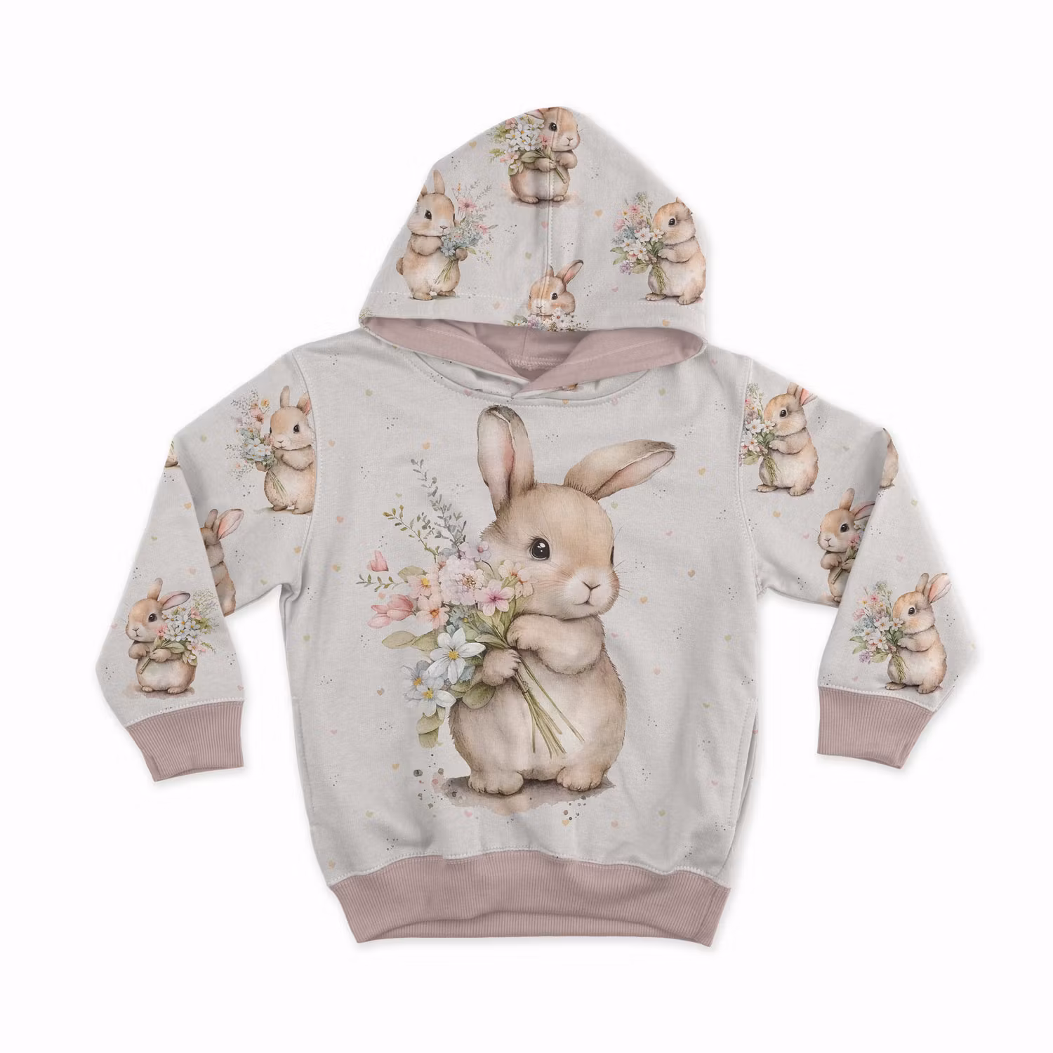 STUV 38 cm - Ett mjukt, stretchigt joggingtyg med tryck av söta kaniner och blommor. Fint för sömnad av bekväma hoodies, toppar, klänningar och leggings.