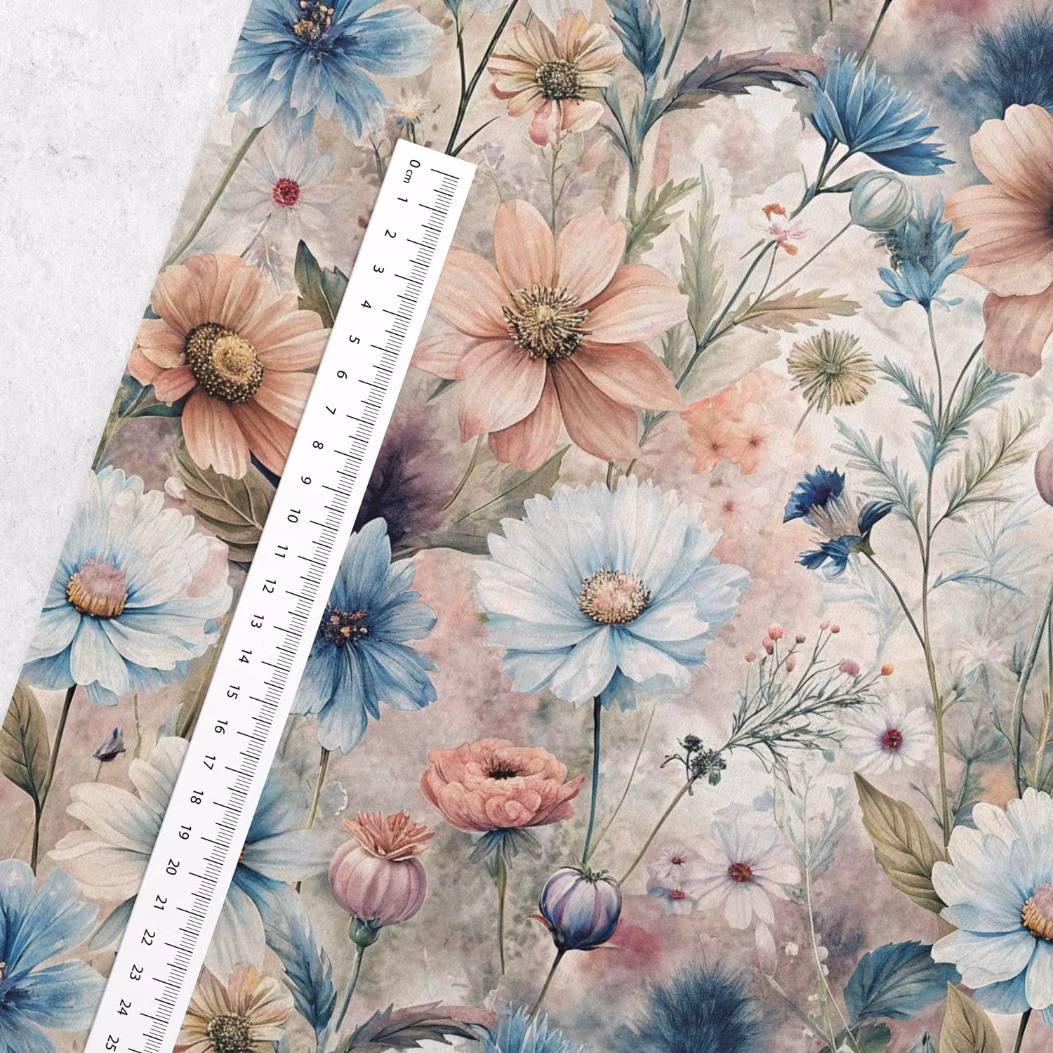 Ett mjukt, stretchigt joggingtyg med tryck av vackra blommor i ljusa nyanser.