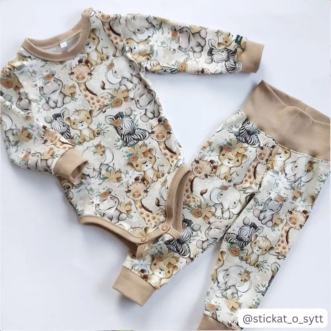 STUV 41 cm - Ett mjukt, stretchigt trikåtyg med tryck av söta djurungar och blommor. Perfekt att sy fina bodys, byxor, pyjamasar, dregglisar och mössor av.