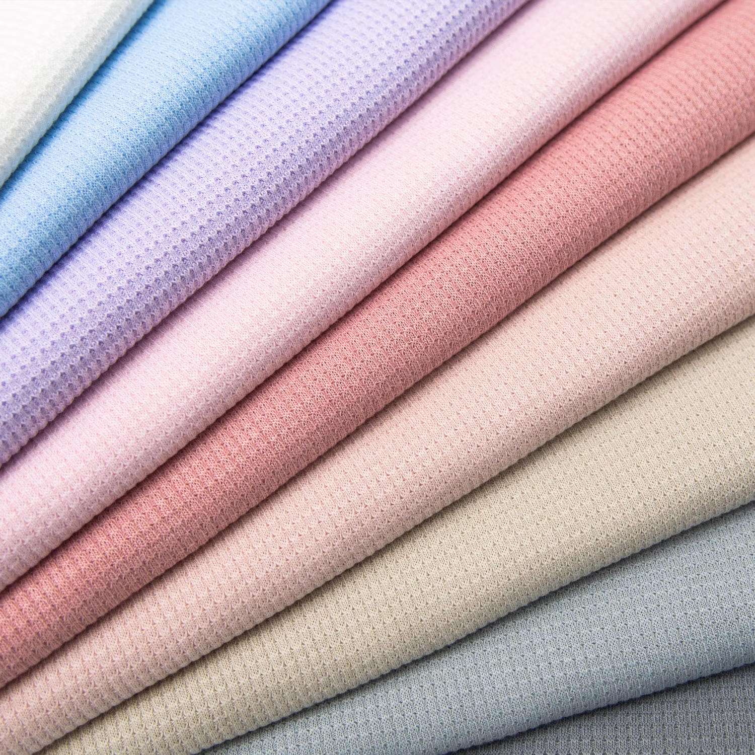 Ett tunt, mjukt och stretchigt trikåtyg med våfflad struktur i grå nyans.