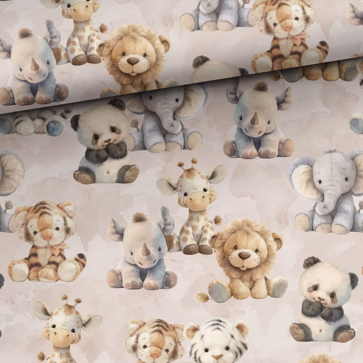 Ett mjukt, vävt bomullstyg med tryck av söta gosedjur.